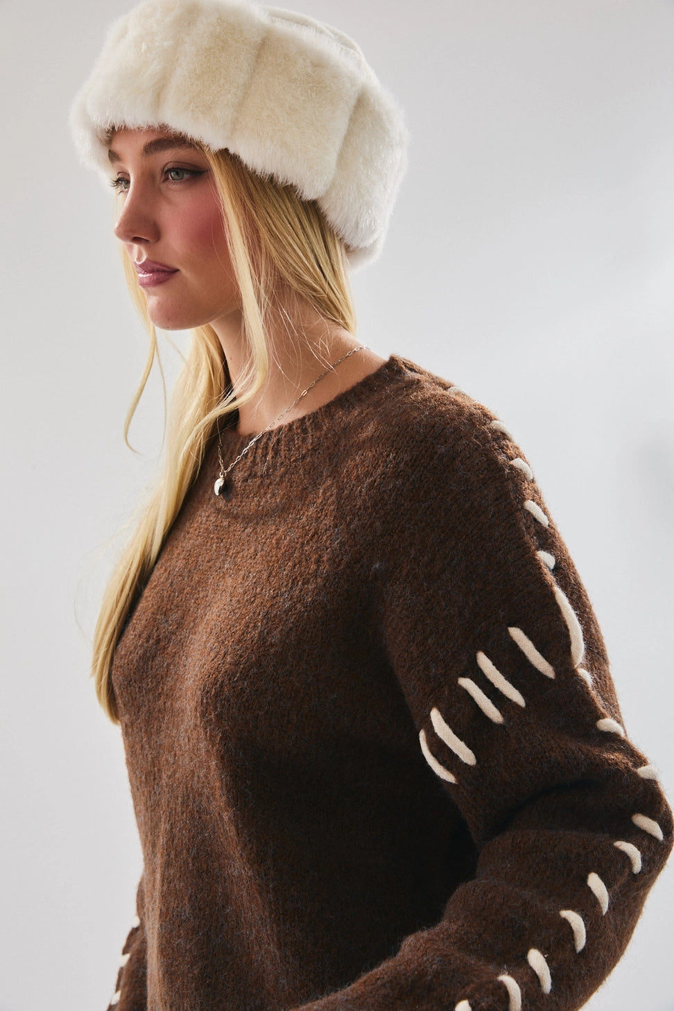 This Stitch Detail Sweater Top in Brown offers both style and comfort. Featuring a beautiful color and soft fabric, it's the perfect addition to any wardrobe. Stay cozy and chic in this must-have top.