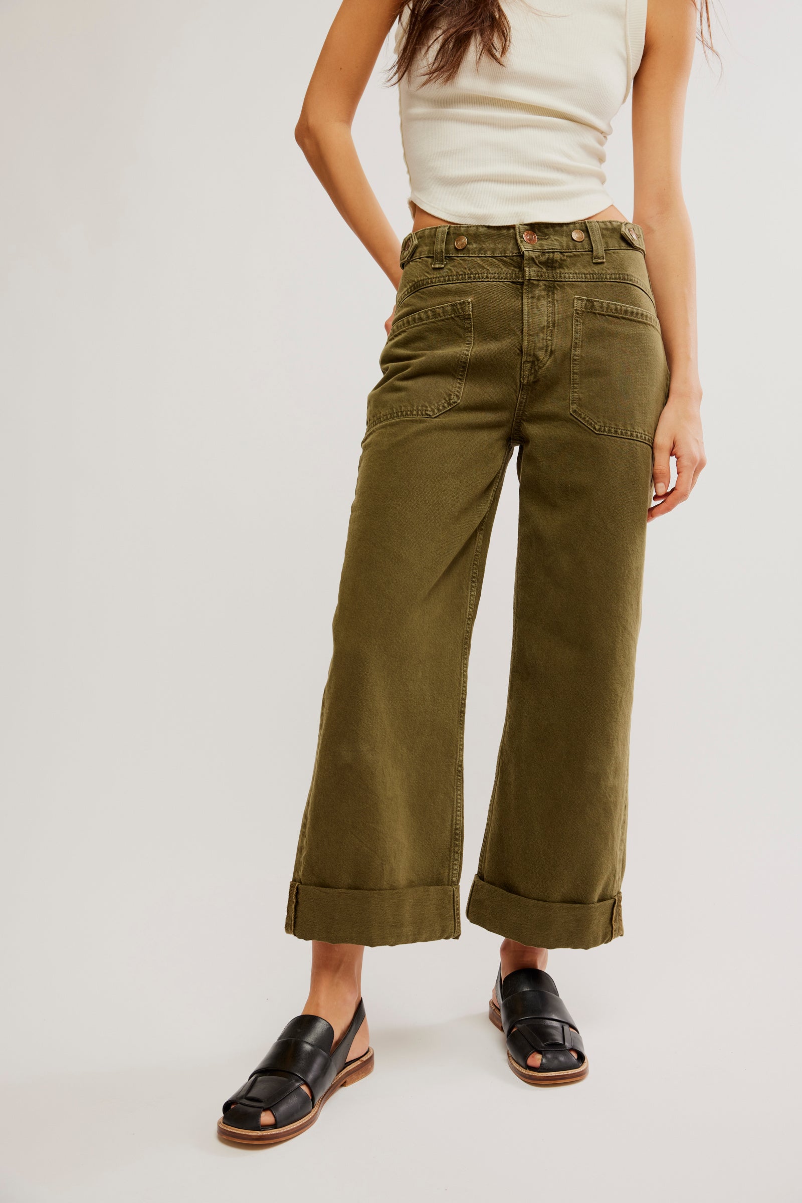 The Palmer Cuffed Jean Army boasts a stylish and functional design. Zip fly and button closure make for easy wear, while the seamed pouch pockets offer convenient storage. Yoking provides a flattering shape, and button detailing at the waistband adds a touch of visual interest. The cuffed hemlines give a chic finish to this versatile jean.