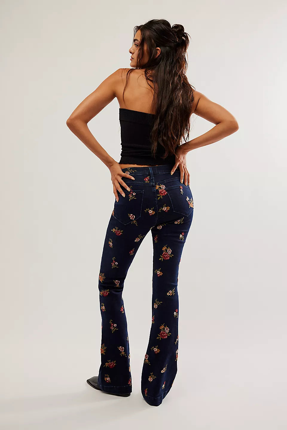 These Wyatt Embroidered Flare Jeans are crafted with intricate embroidery that adds an extra layer of style to this fashionable jean. The high-quality fabric and flattering cut provide a comfortable and stylish fit.