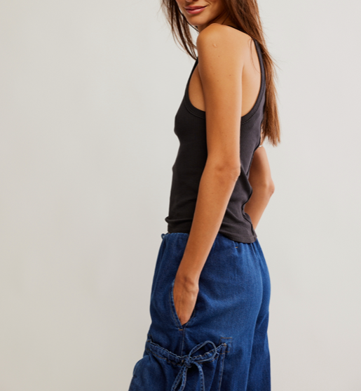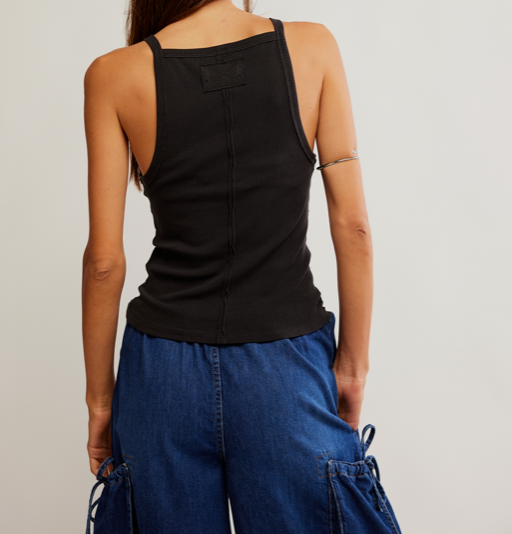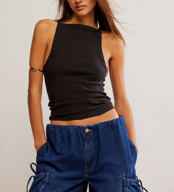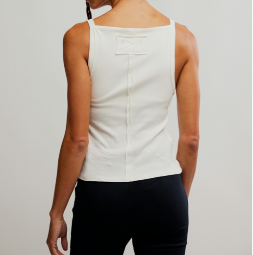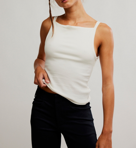 Achieve a sleek and stylish look with the Mia Tank. The slim fit and high square neckline create a flattering silhouette, while the soft ribbed fabrication offers comfort and versatility. Dropped armholes add an edgy touch to complete this must-have piece.