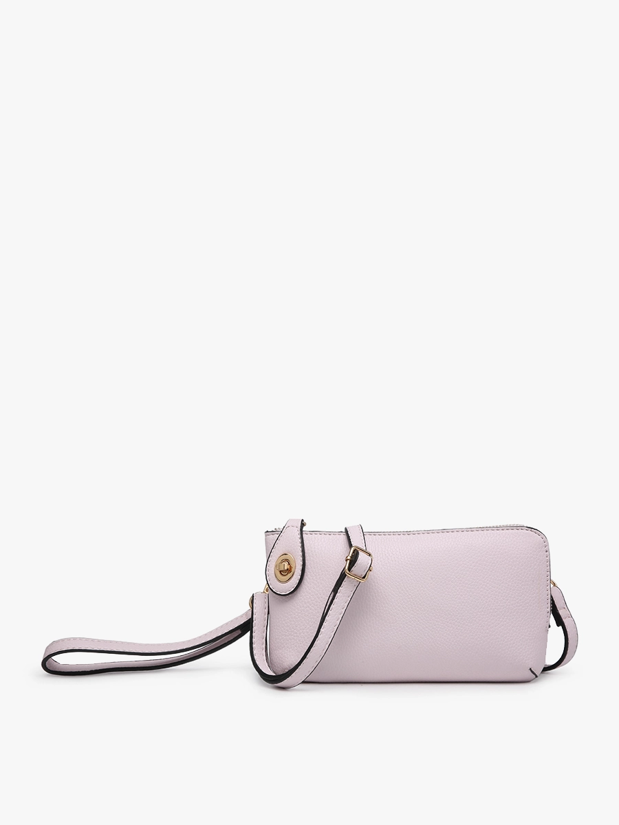 The Kendall is a bestselling crossbody wristlet wallet that offers organization and versatility. A main center zip compartment, twist lock closure, and inner cardholders provide practicality while the adjustable shoulder strap and detachable wristlet strap provide convenience. Made with vegan leather, it measures 8.5" L x 5" H x 0.5" D.