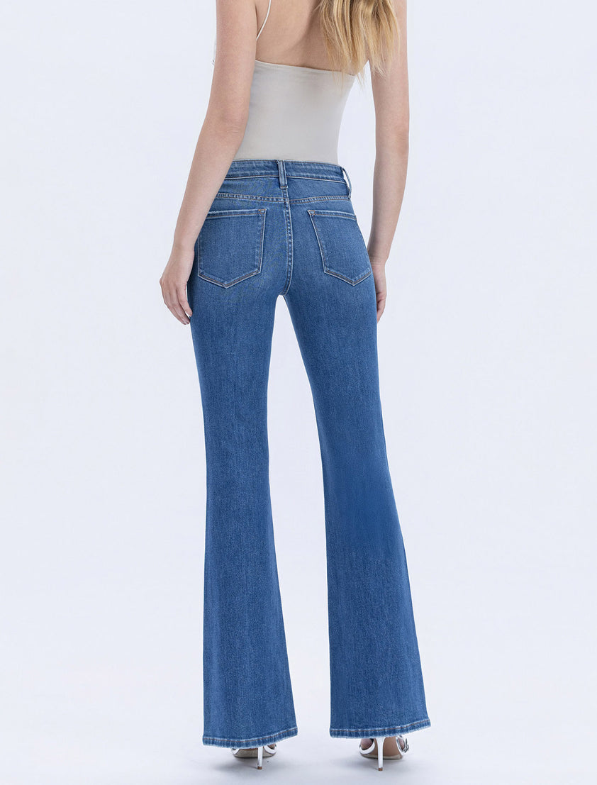 Step up your denim game with these Mid Rise Dark Wash Wide Leg jeans. The comfort stretch denim, high rise waist, and finished hem provide all-day comfort and a classic look. These full-length wide jeans are imported and made with 54% cotton, 6% polyester, 38% lyocell, and 2% spandex for the perfect fit. With a rise of 10 1/2", inseam of 33", and leg opening of 22", these jeans are sure to become a go-to in your wardrobe.