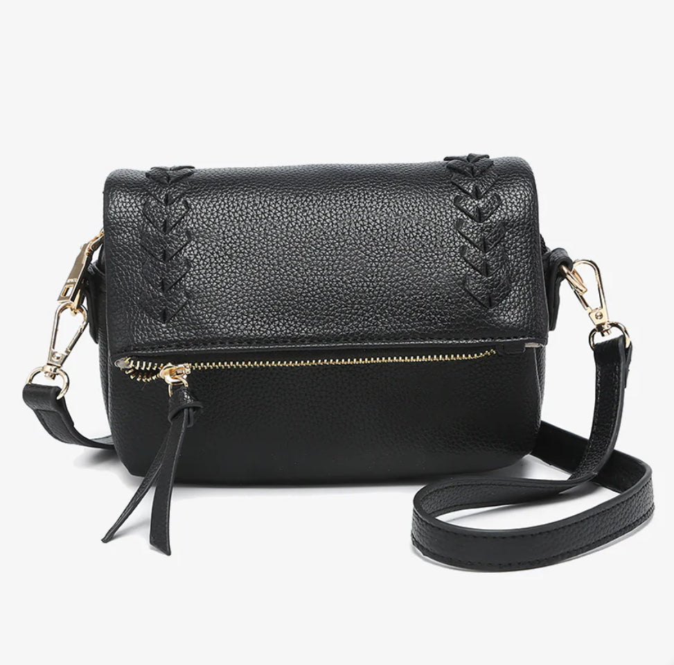 This Scout Whipstitch Crossbody Bag in Black is perfect for the stylish and conscious consumer. Made with vegan leather and a whipstitch flapover closure, it also features a convenient snap pocket and three compartments with zip and slip pockets. The adjustable and removable crossbody strap adds versatility to your look.
