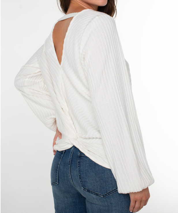 The Twist Back Long Sleeve Top is a stylish knit top with a unique twist back design. This beautiful top keeps you looking fashionable without compromising comfort. The soft fabric and comfortable fit are sure to make this top your go-to for everyday wear.