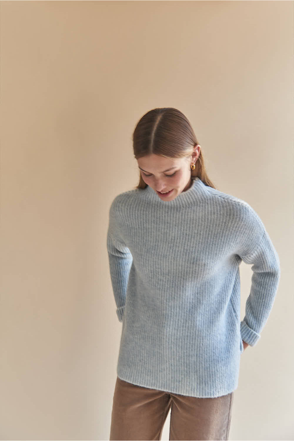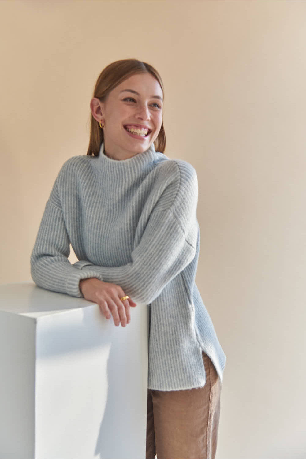 A new favorite in both stores! The Holly Sweater is a wool blend that is very soft to the touch! A best seller. Fits true to size.