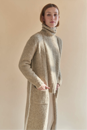 Made in spain the Sycamore is a gorgeous full length cardigan with a soft feel, contrasting underarm seam, and patch pockets.