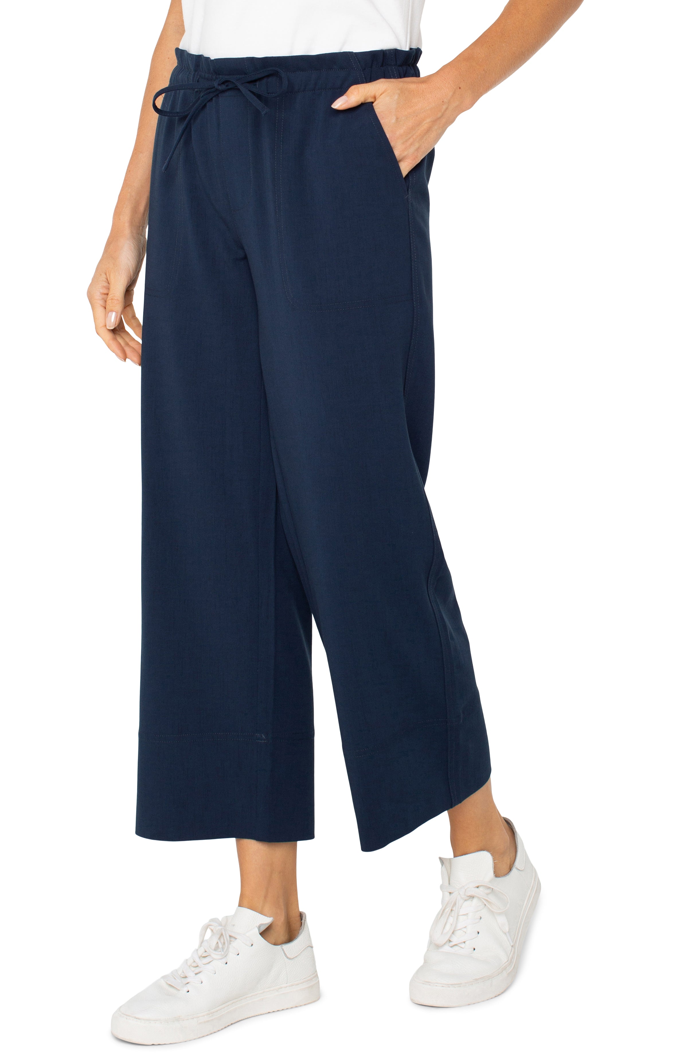 Upgrade your wardrobe with our Pull on Tie Waist Wide Leg Ankle pant. Super comfortable with a 26'' inseam, this versatile pant can be dressed up or down. Featuring slant front pockets, functional back pockets, and a drawstring elastic waistband for easy wear. Mix and match with our bomber jacket for a trendy look.