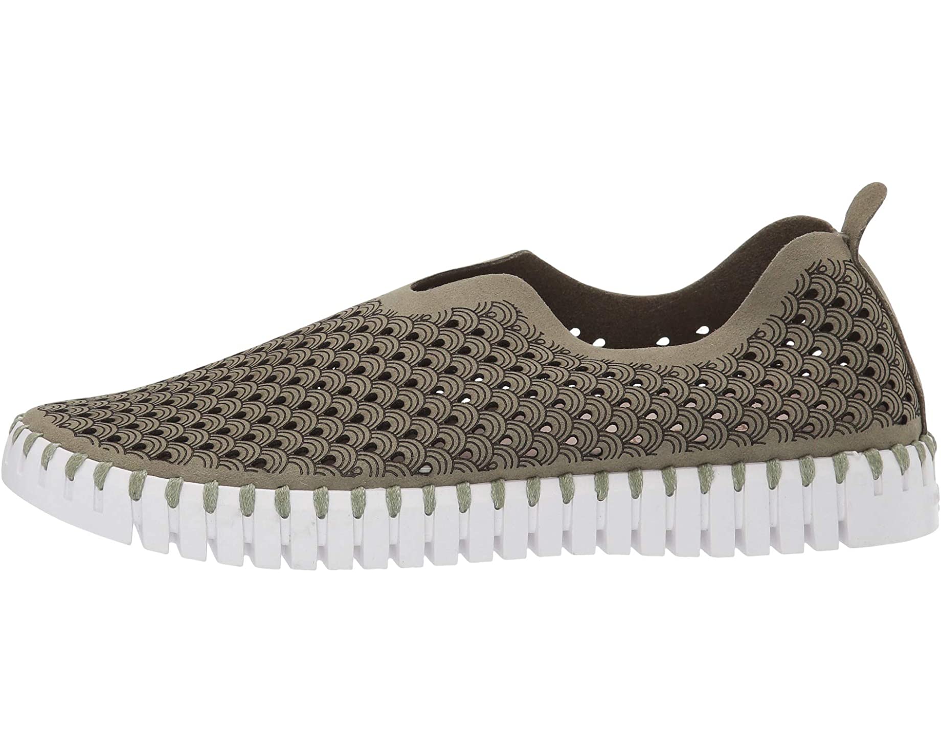 The Tulip 139 Sneaker Army offers an elegant sneaker silhouette, crafted with a white perforated man-made upper and soft, supple suede lining for a luxurious feel. A cushioned footbed provides superior cushioning, while the flexible rubber sole and dual gore elastics provide extra flexibility and comfort, perfect for all-day wear. The sleek rear pull-tab allows for easy on and off, and the stylish, low-profile 1" platform gives a subtle boost. Available in whole sizes only.