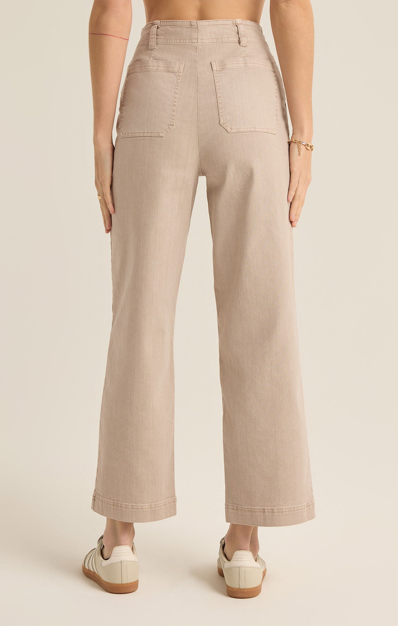 Upgrade your pant collection with our Bobbi Washed Pant. These high-waisted pants feature a zip fly closure and patch pockets at the front for convenience. The straight leg fit and regular inseam length of 26 1/2" add a stylish touch, hitting at the ankle for a flattering silhouette.