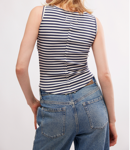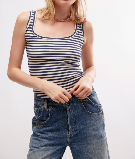 Introducing the Hummingbird Stripe - a relaxed and classic fit top that features a scoop neckline, rounded bottom hem, ribbed knit fabrication, and defined seaming for a flattering fit. Perfect for everyday wear with its effortless style.