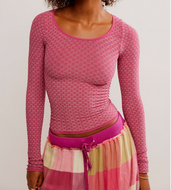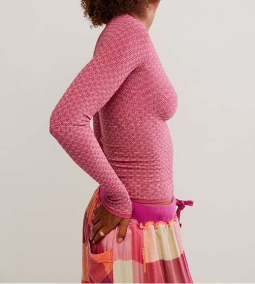 Flaunt your feminine side with this Love Letter Long Sleeve in Glass Roses. The textured fabric, round neck, and long sleeve design make it perfect for layering or wearing on its own. The tight fitting cami style will show off your curves while keeping you comfortable.