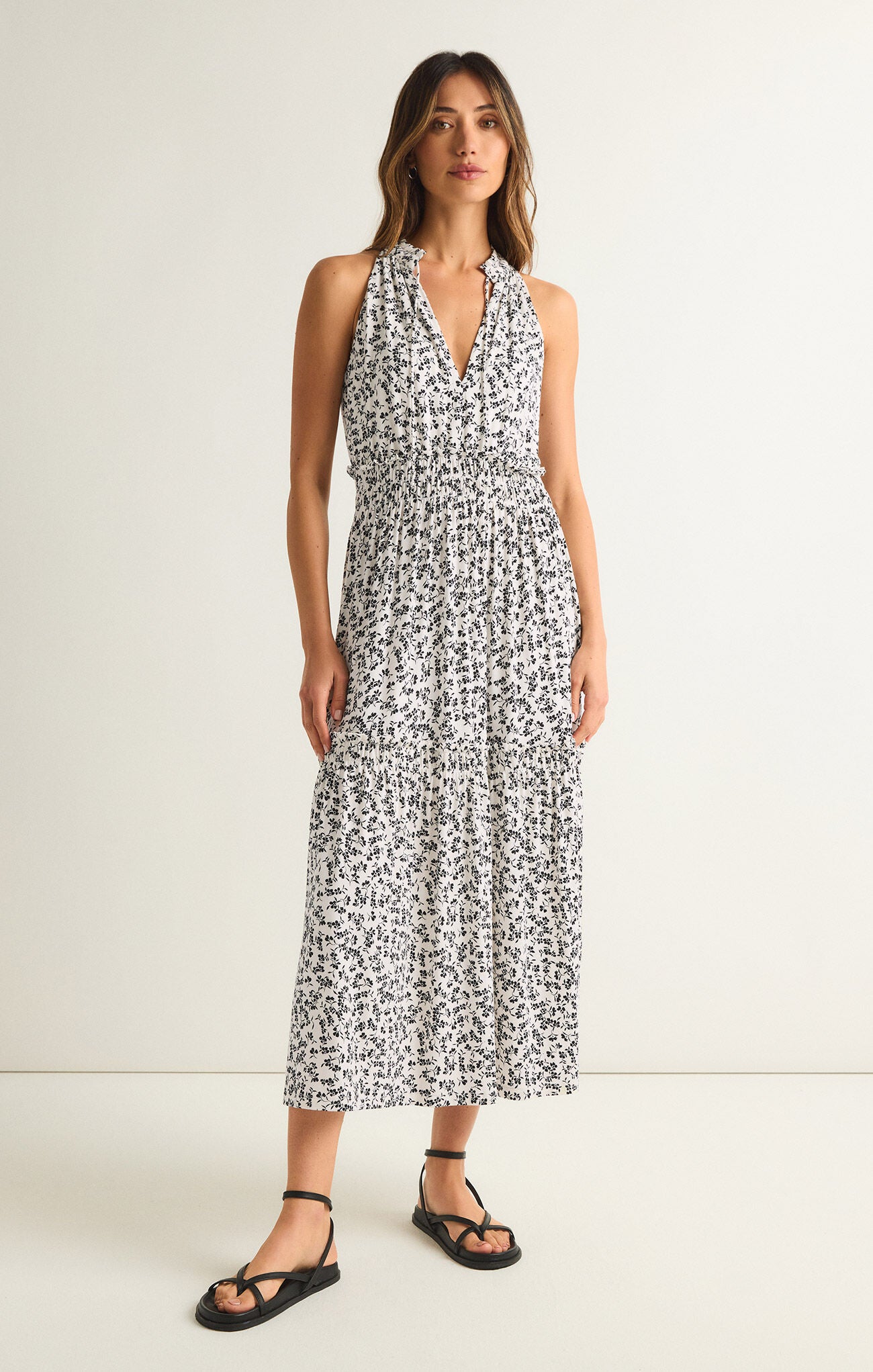 Effortlessly chic and comfortable, the Rhea Gia Ditsy Midi Dress is the perfect addition to your wardrobe. This halter dress features an elastic waist detail for a flattering fit and is made from a mid-weight knit fabric. The regular fit and sleek jersey material made of rayon and spandex give the dress a luxurious and stylish look.