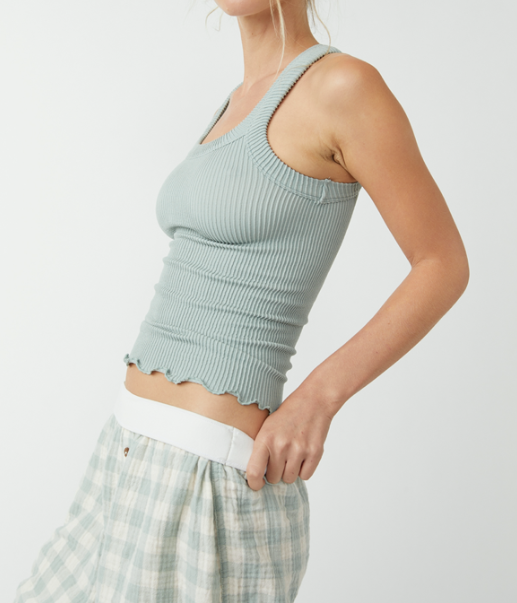 This Ribbed Seamless Tank in Iceberg Green offers a soft and comfortable fit with its soft ribbed fabrication and classic cut. The crew neckline and chunky trim add a touch of style to this versatile piece. Perfect for any occasion, this tank is a must-have in your wardrobe.