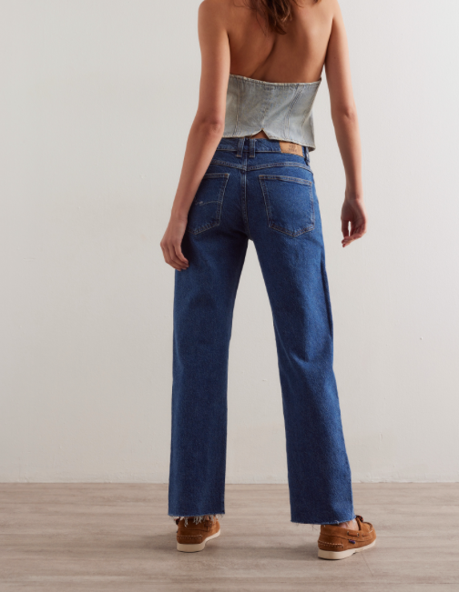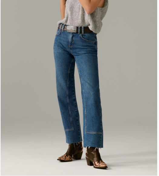 Take on any challenge with confidence in our Risk Taker Mid-Rise Straight / Be Bold jeans. Crafted with semi-rigid denim, these true straight silhouette jeans provide a flattering fit and durable wear. Featuring a zip fly and button closure, five-pocket design, and ankle-length inseam with frayed hem, these jeans also boast utility seaming for added style and functionality.