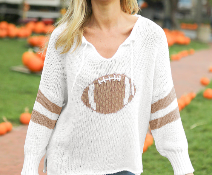 Unleash your team spirit in style with our Team Football V Cotton shirt. Its V-neck and faux ties add a playful touch while the football graphic on the front showcases your love for the game. With a roomy silhouette, it's the perfect blend of comfort and casual charm.