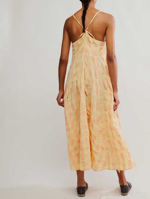 Introducing our new Via Midi Dress in Creamsicle Combo Eve. With a relaxed and flowy fit, it features a V-neckline, bow-tie detail, button-front closure, and convenient side pockets. The adjustable shoulder strap tie at the back and soft cotton fabrication make it both comfortable and stylish. A versatile and vintage-inspired must-have for your wardrobe.