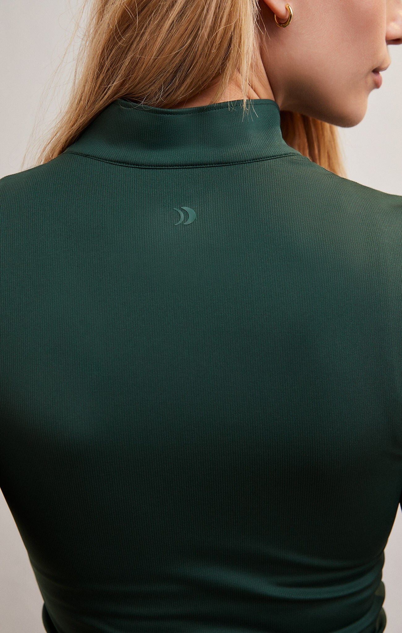 Stay comfortable during your workouts in the Cycle Half Zip, made with rib fabric for a classic fit. It has an invisible zipper, mock neck design and thumbholes for convenience. The waistband hits below your waist and pairs perfectly with the Good Form Rib 7/8 Legging. 78% polyester and 22% spandex.