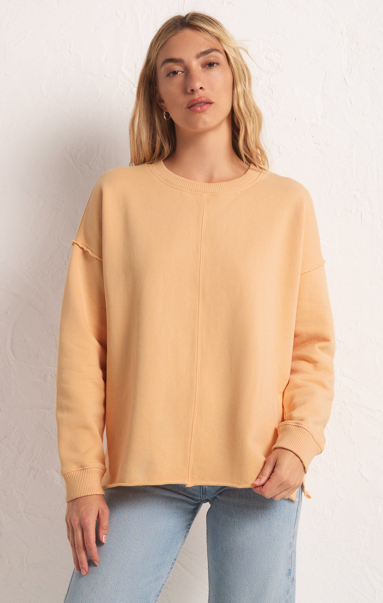 Introducing the Hermosa Sweatshirt, the perfect addition to your wardrobe. With a crew neckline and raw edge details, this heavyweight fleece sweatshirt provides both comfort and style. The wash treatment gives it a unique look, while the relaxed fit and 100% cotton material ensure a comfortable wear. Length from shoulder is 26 1/2 inches.