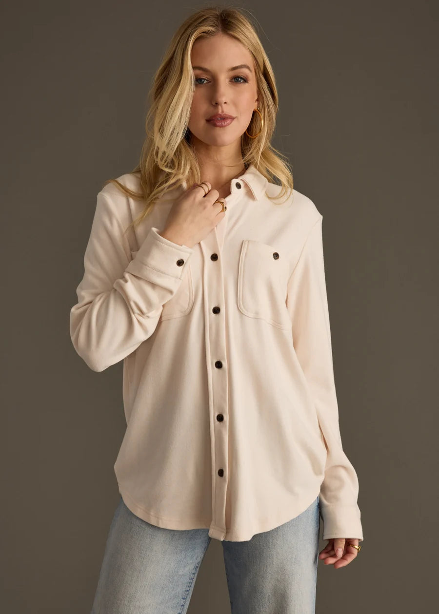 Expertly crafted with a blend of 75% Rayon, 15% Acrylic, and 10% Spandex, the Mindi Super Soft Button Up in Ivory offers unbeatable comfort and style. This imported garment features long sleeves, two front pockets at the bust, and a button closure on the front. Elevate your wardrobe with this must-have top.