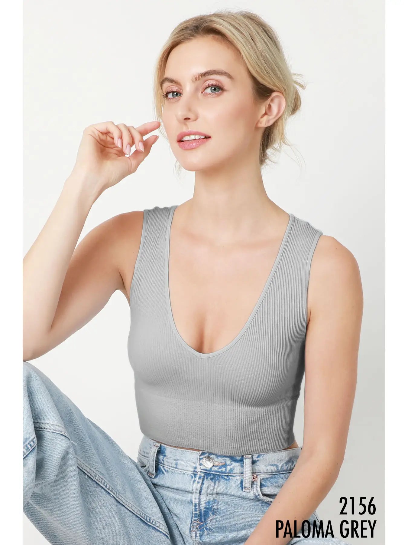 Plunge V-Neck Crop Top Paloma Grey