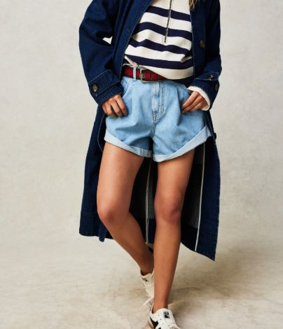 The Danni Short / Open Sky features a high-rise, relaxed tapered silhouette that flatters any figure. With its zip fly and button closure, five-pocket design, cuffed hemlines, and rigid denim fabrication, this versatile piece can be dressed up or down for any occasion. Perfectly paired with a simple tee or elevated with a sheer blouse, these shorts offer endless ways to wear.