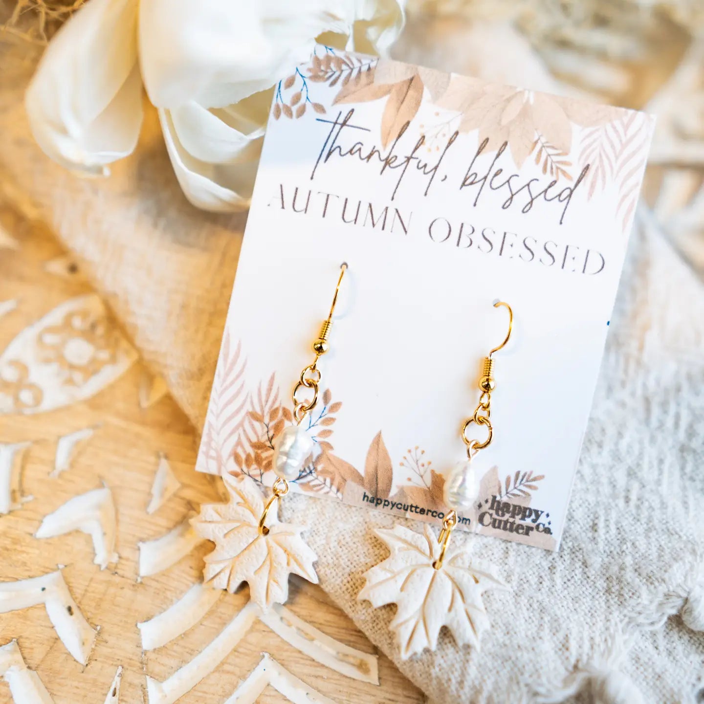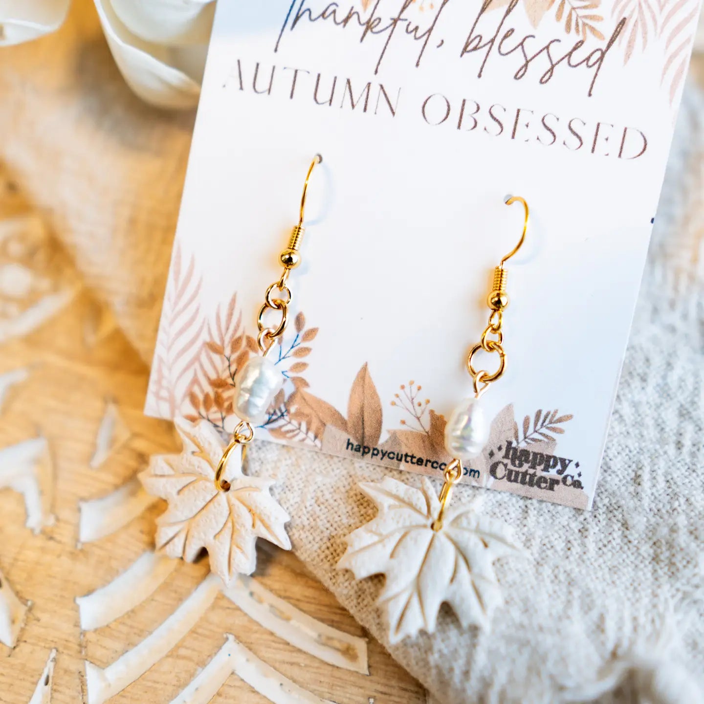 Elevate your style with our Elegant Cream Maple Leaf Earrings Fish Hook. These handcrafted clay earrings feature stunning maple leaf designs, accented with pearls for a touch of sophistication. Perfect for adding a touch of autumn elegance to any outfit.