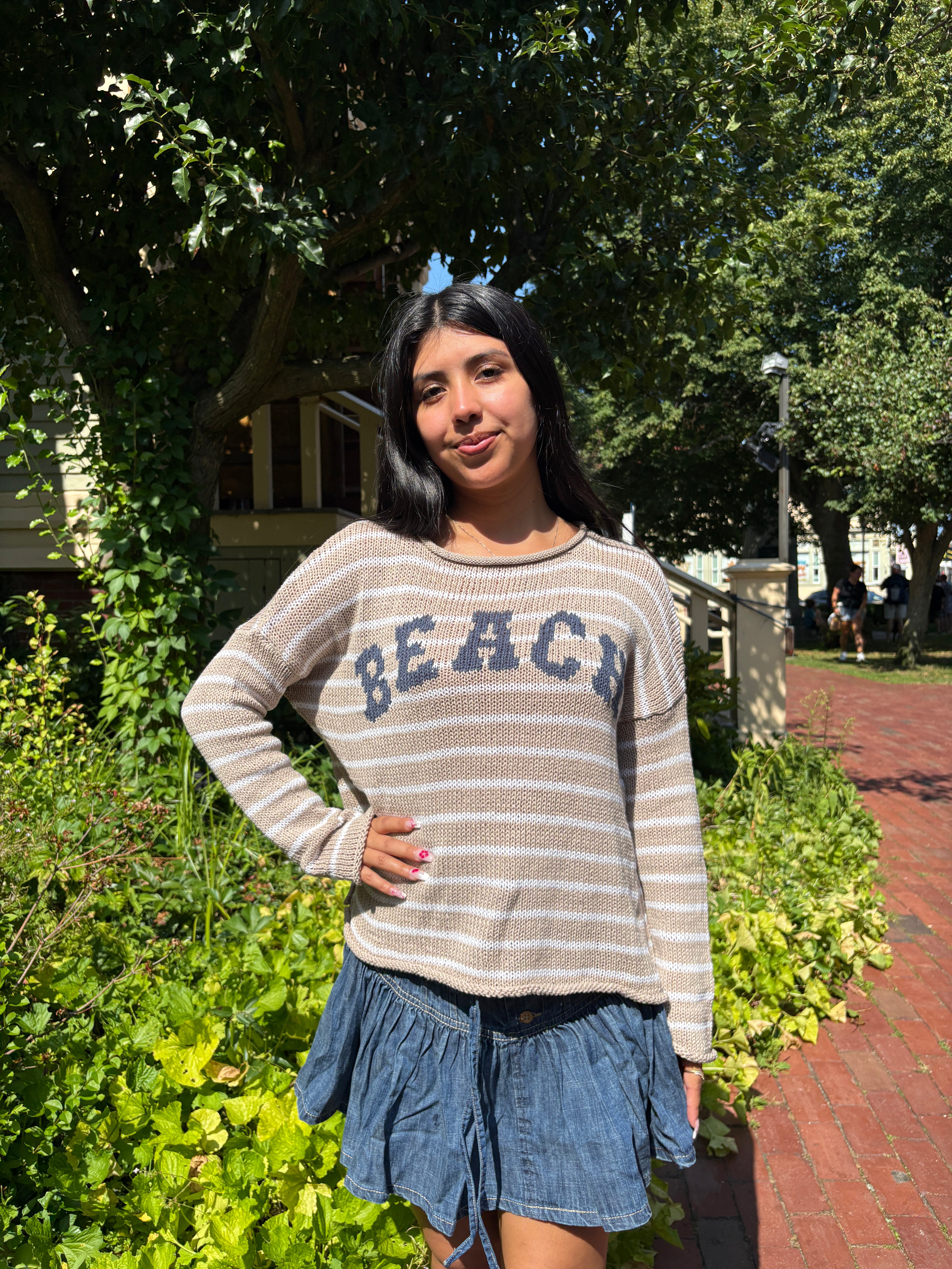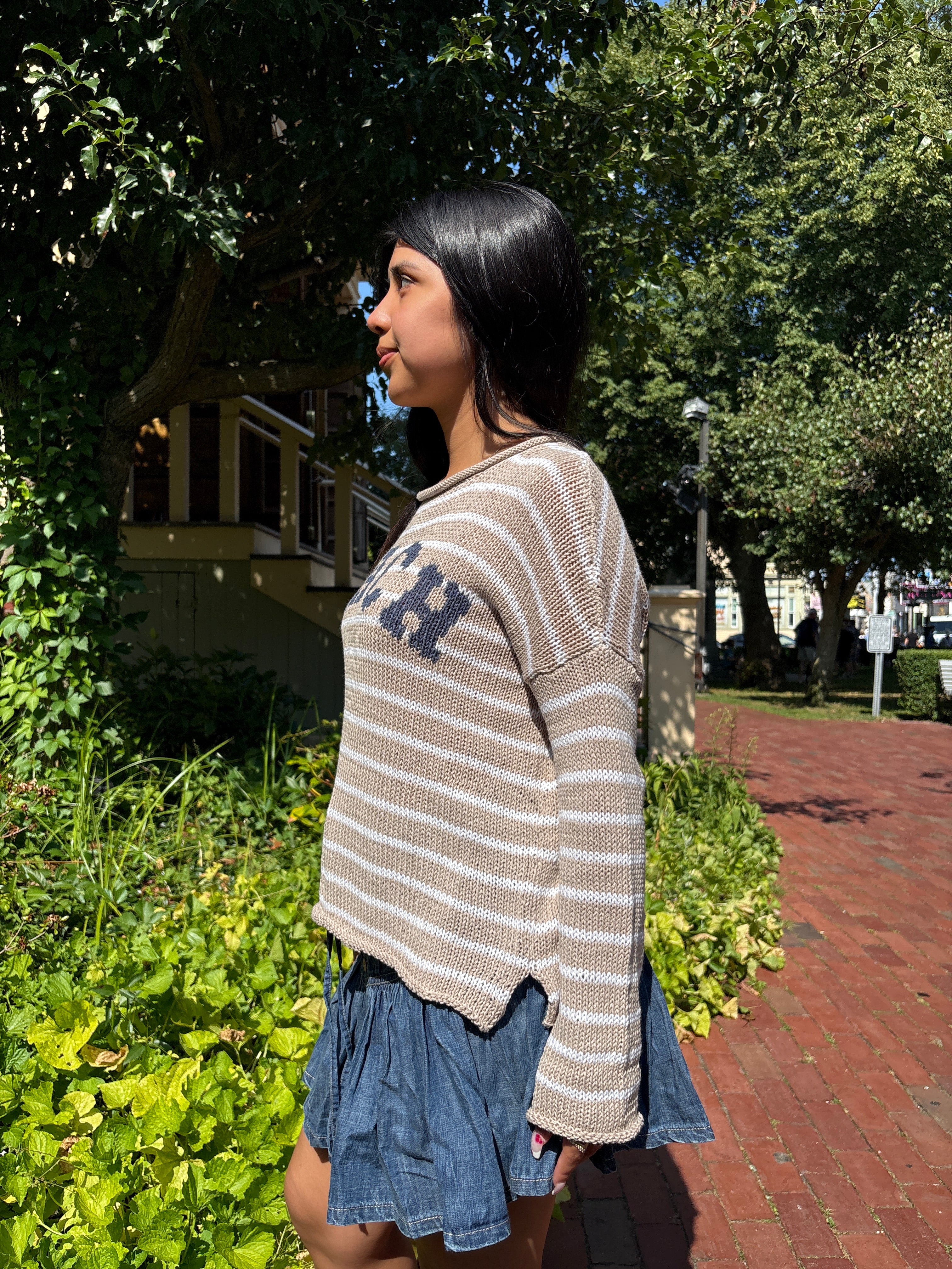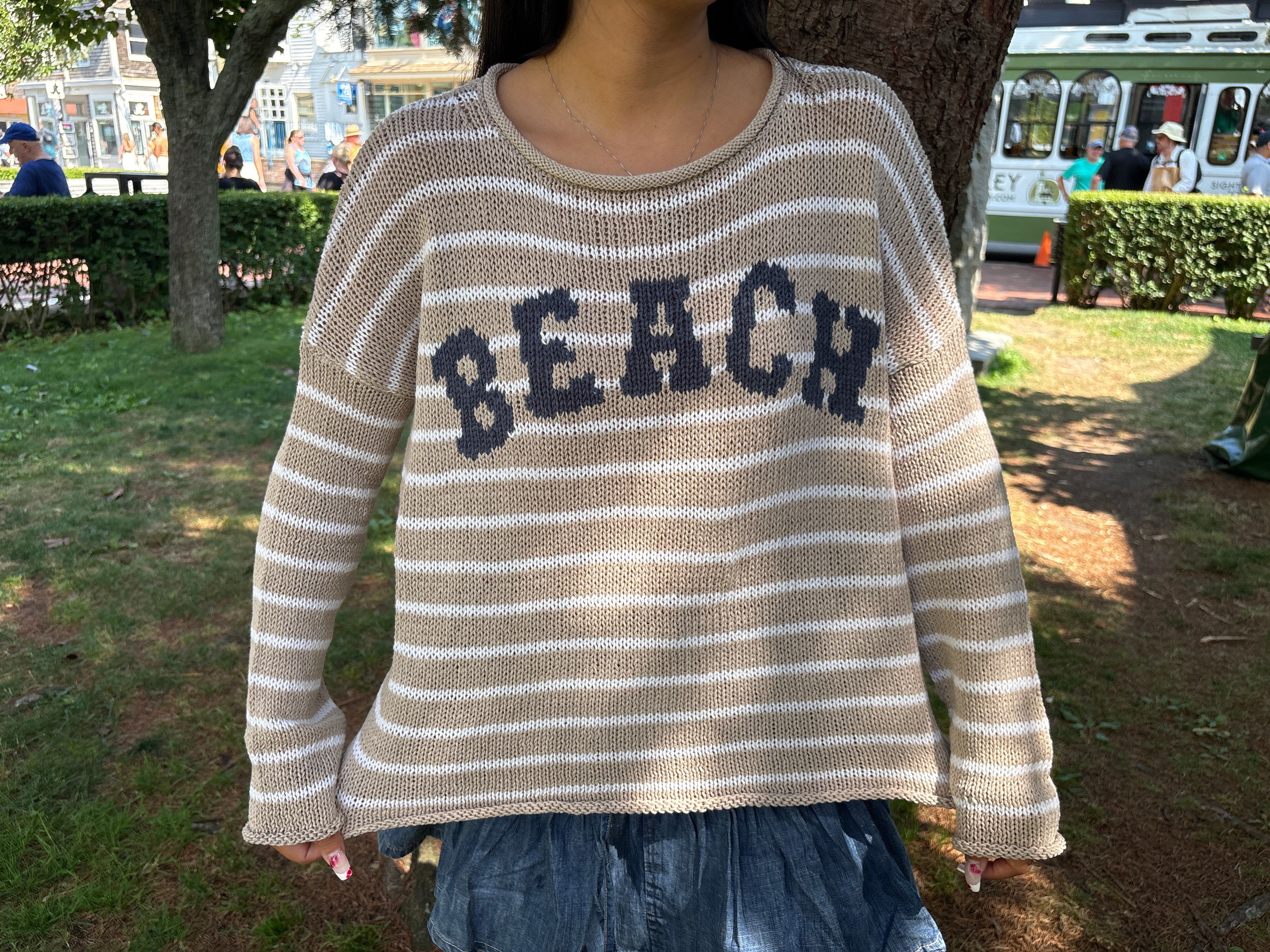Beach Striped Crew Cotton / Khaki Breaker White Striped