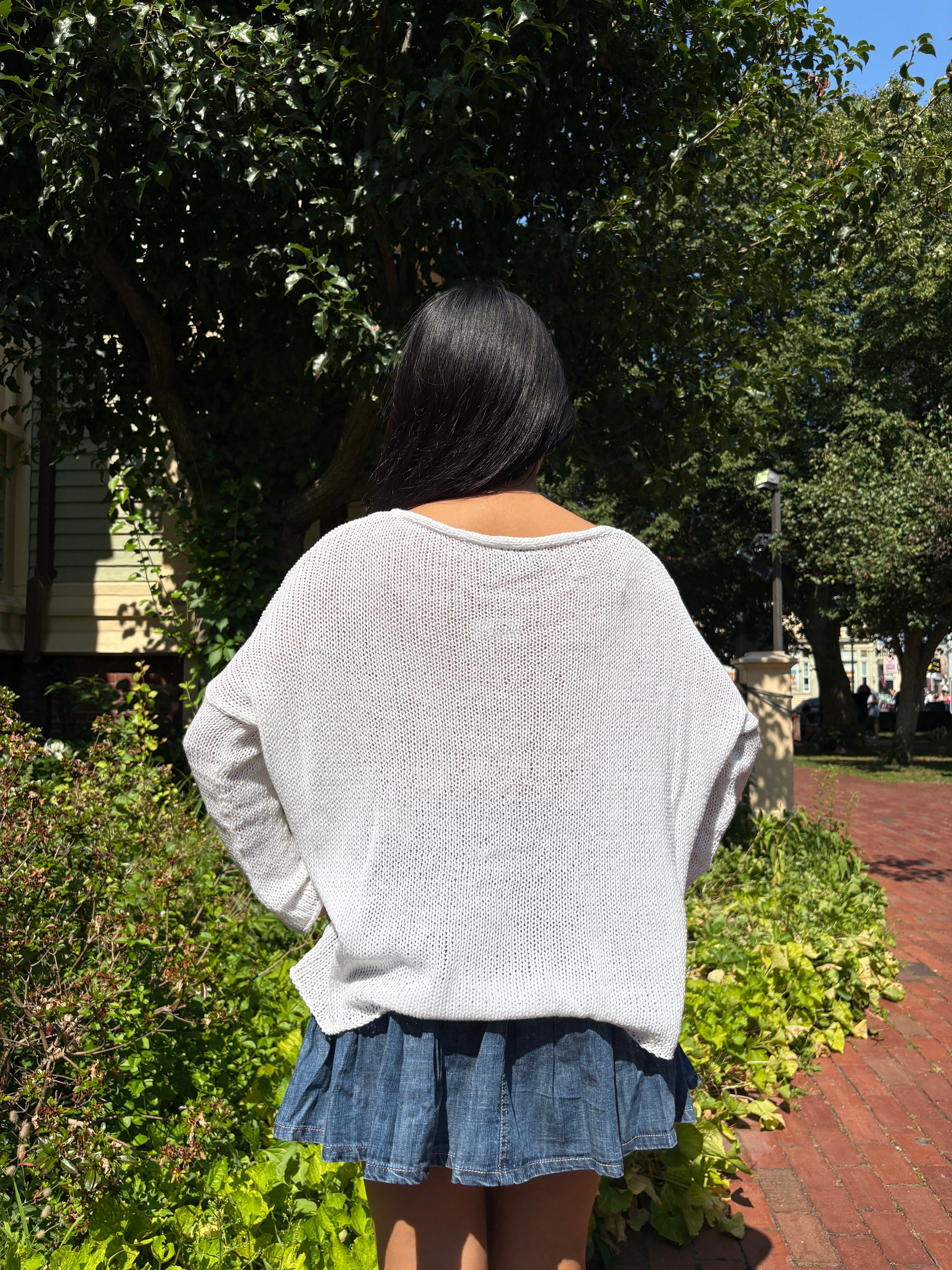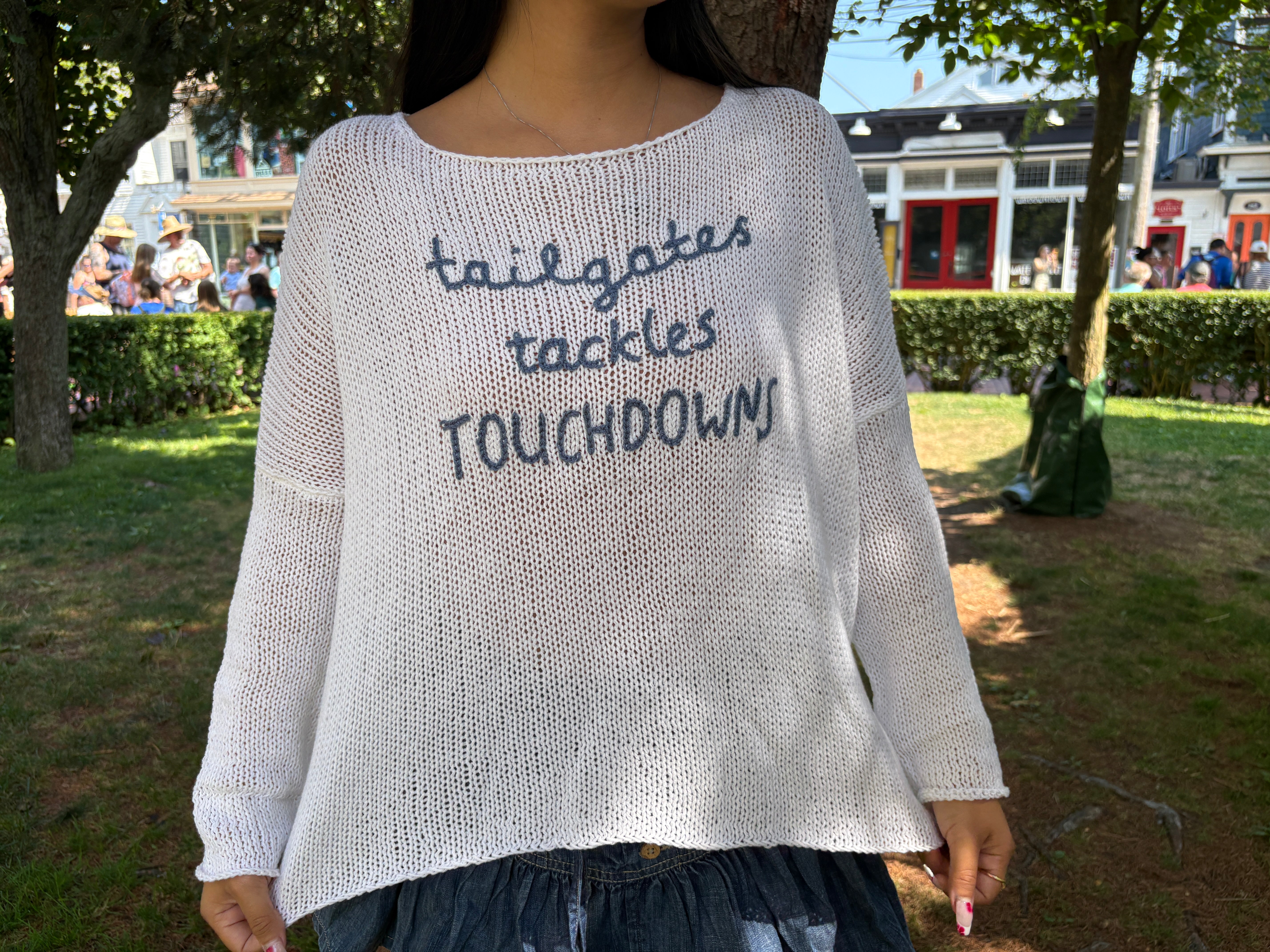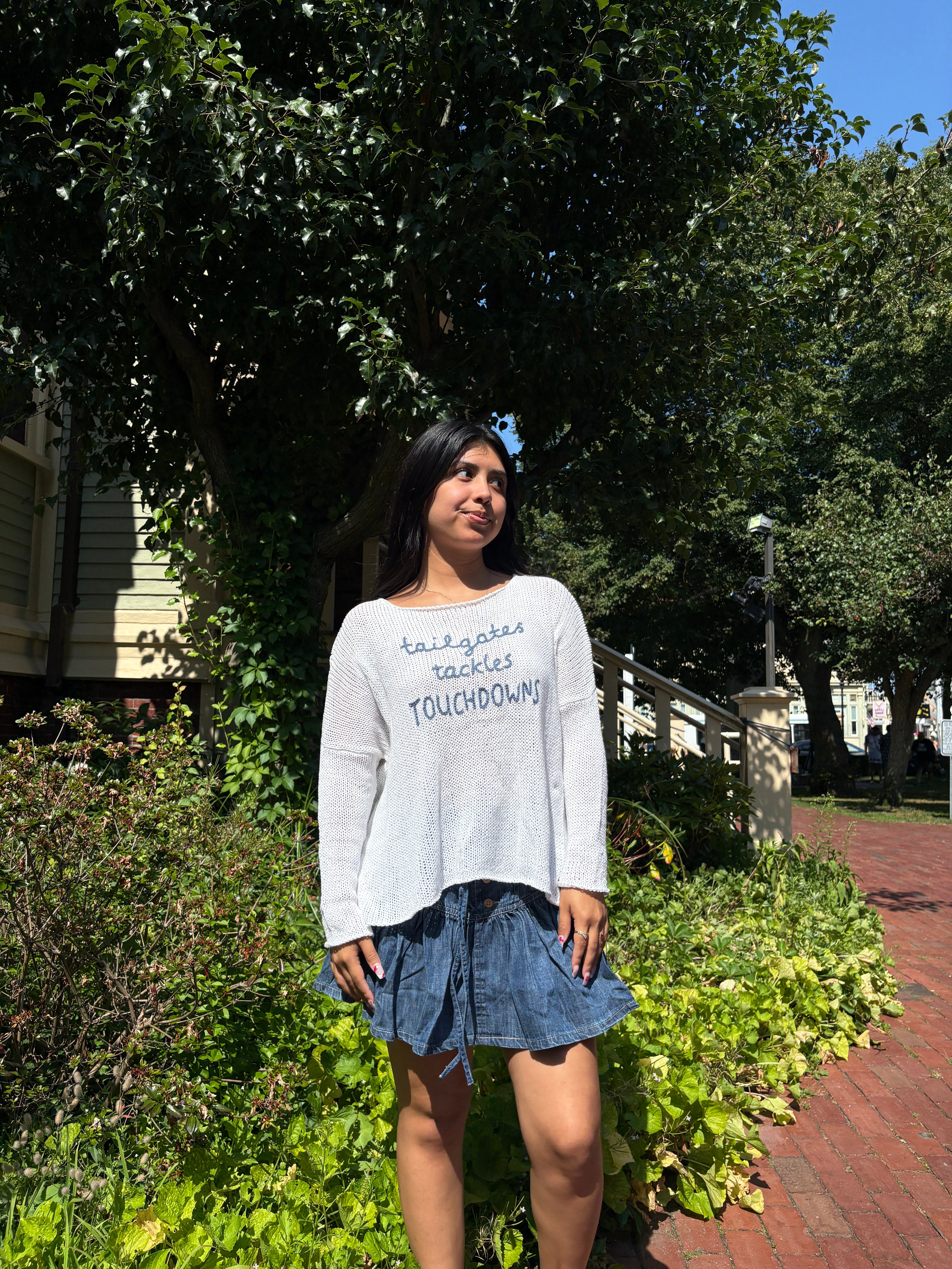 Get game day ready or channel the spirit of it with the Tailgates Crew Cotton Breaker Sweater by Wooden Ships. Made with soft, breathable cotton, this lightweight knit features vibrant Blue Fire lettering on a crisp White base. With a relaxed crew neckline and slouchy fit, it's perfect for a casual and effortlessly cool look. Wear it with jeans, leggings, or denim cutoffs for any occasion.