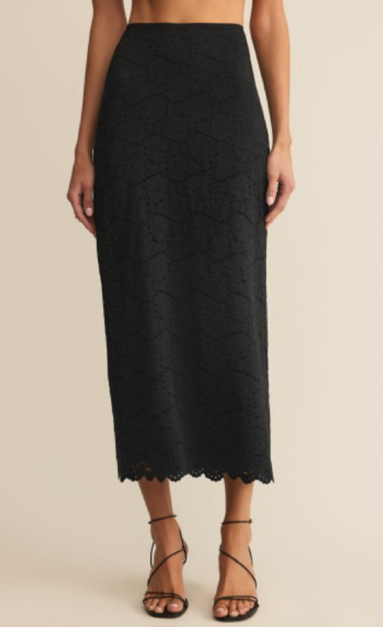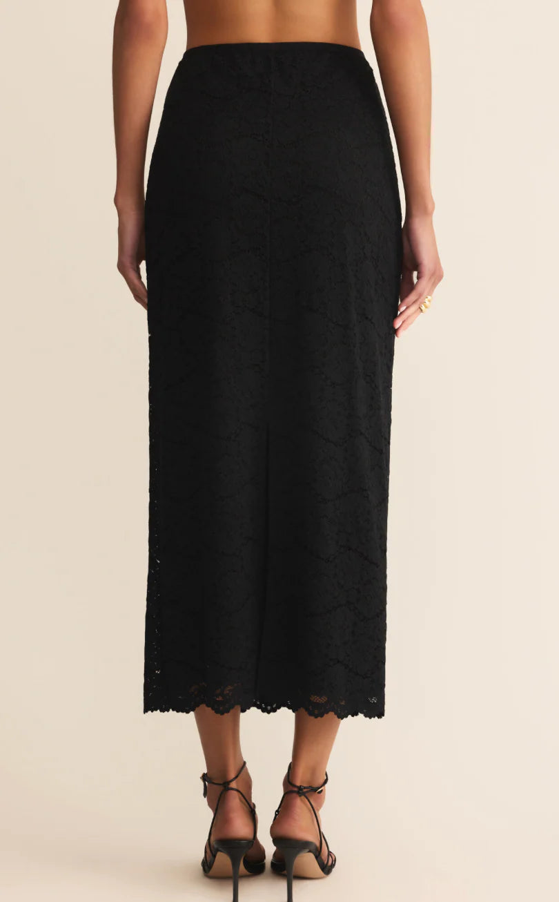 Experience comfort like never before with the Via Lace Midi Skirt. Made from soft and lightweight material, this skirt provides a comfortable fit all day long. Perfect for any occasion, stay stylish and cozy with the Via Lace Midi Skirt in classic black.