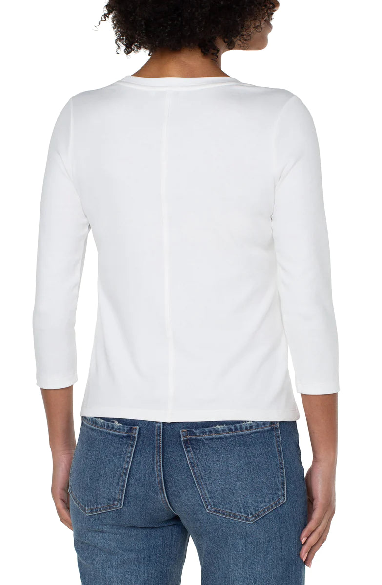 This 3/4 sleeve scoop neck knit tee is designed with comfort and versatility in mind. It features a relaxed fit and no-see through fabric, making it the perfect staple for any wardrobe. Made to be soft and breathable, this tee is perfect for everyday wear.