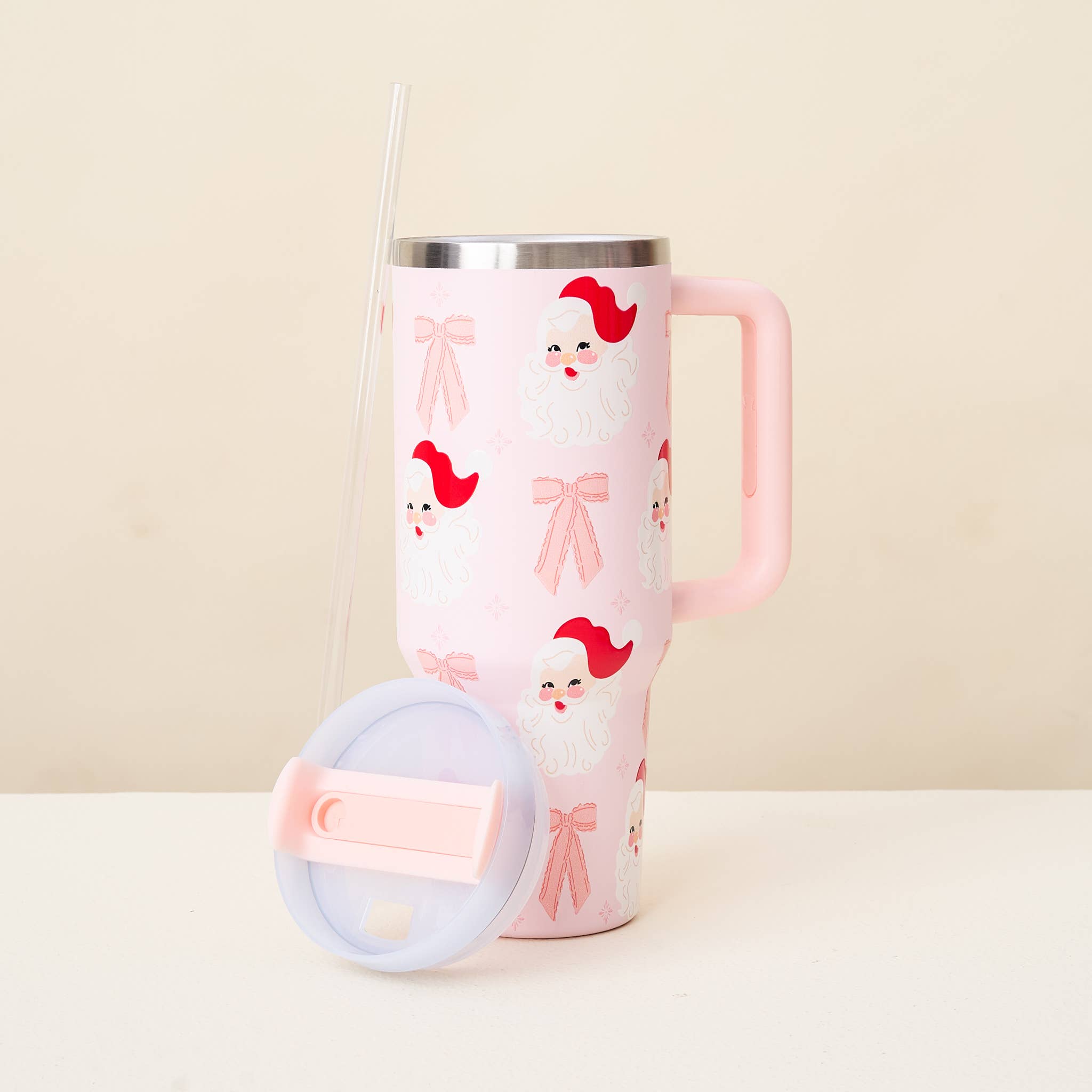 Embrace the holiday season with our bestseller: our stylish 40 oz tumbler, now available in festive prints! This must-have tumbler comes complete with a reusable straw and lid, making it ideal for on-the-go sipping. Designed to fit snugly in car cup holders, it also offers a convenient no-straw drink option.
