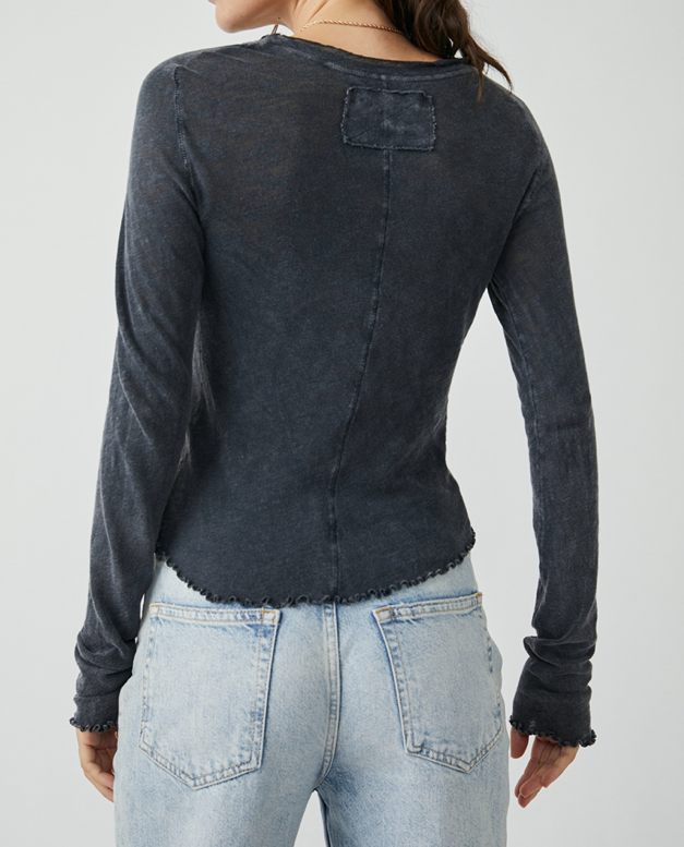 Stay on top of fashion trends with the Be My Baby Long Sleeve. This top features a simple, relaxed fit and lettuce-style hemlines for a relaxed yet stylish look. Enjoy all day comfort without compromising on style.