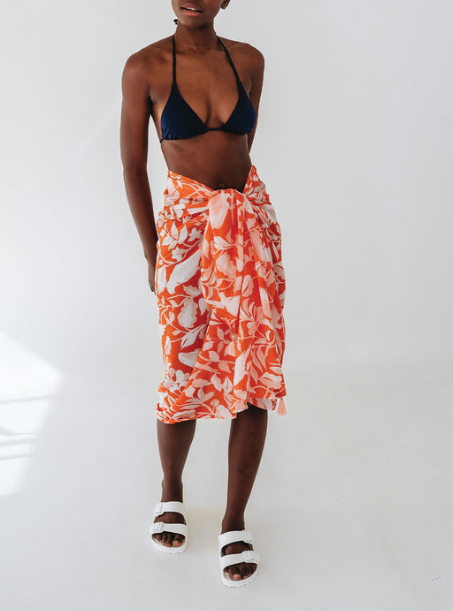 Garden goes graphic in this high-contrast print tasseled pareo. Whether you tie it around your waist or explore the many ways to wear this versatile wrap, you're sure to make a statement with this bold beach-ready style