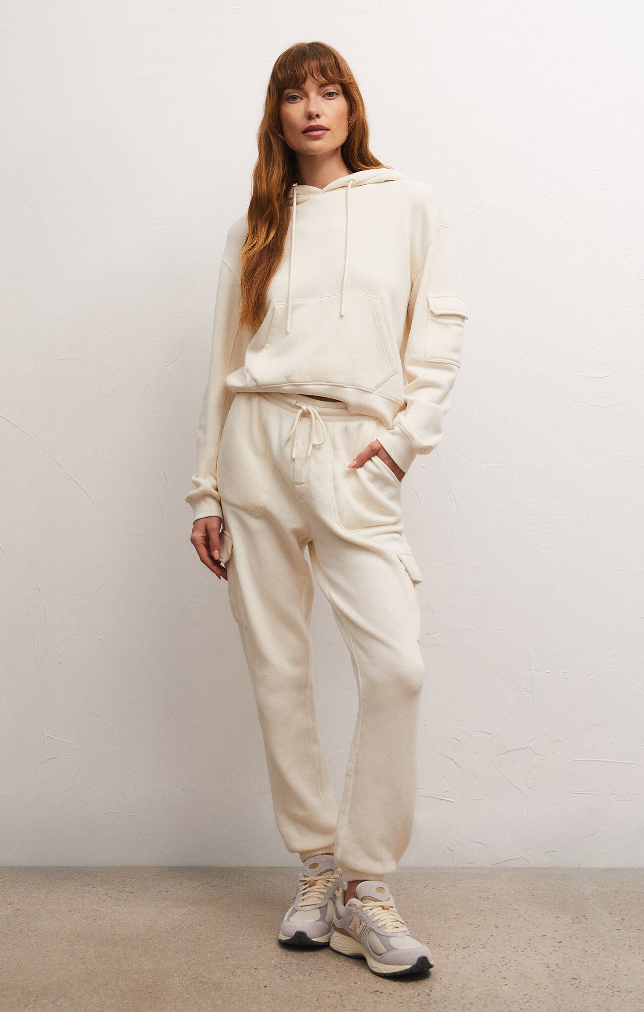 The Cargo Hoodie is ideal for activewear and everyday style. Crafted to provide a relaxed and stylish look, it features a cargo pocket and semi-sheer fabric made from 80% Cotton and 20% Polyester. Elevate your athleisure look and pair it with the Cargo Jogger.