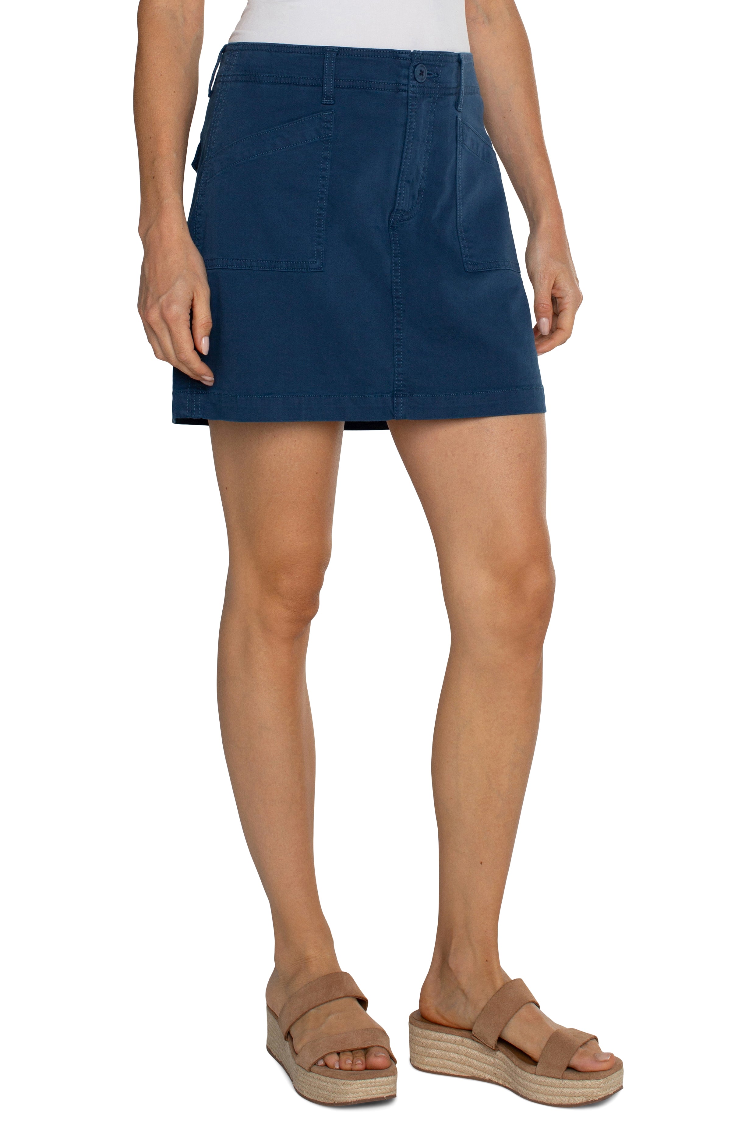 Introducing our Cargo Skirt 15" - a must-have for any coastal wardrobe. This navy blue skirt not only offers a stylish and versatile look, but also features built-in shorts for added comfort and functionality. Perfect for any summer adventure, from the beach to the boardwalk. Get yours now!