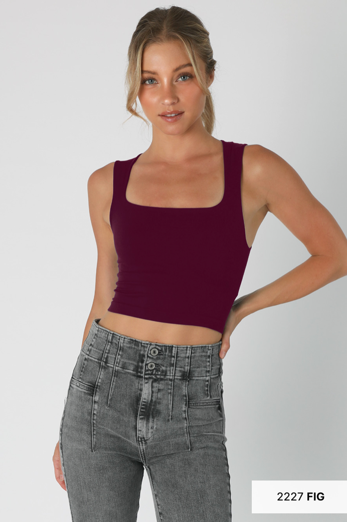 Upgrade your wardrobe with our Clean Line Square Neck Top in Butter Cream. Sleek square neckline adds a modern touch. Seamless design offers a comfortable and irritation-free fit, perfect for all-day wear. Cropped at the waist for a stylish twist. One size fits XS-M/L.
