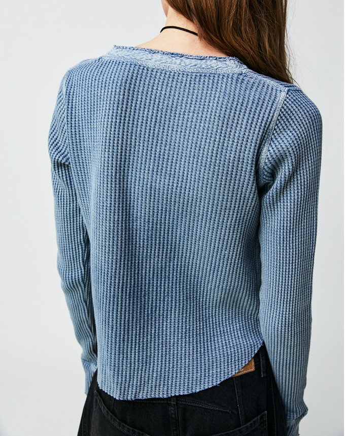 Perfect Essential, with a henley-inspired silhouette and waffle knit. It has a classical and relaxed fit.