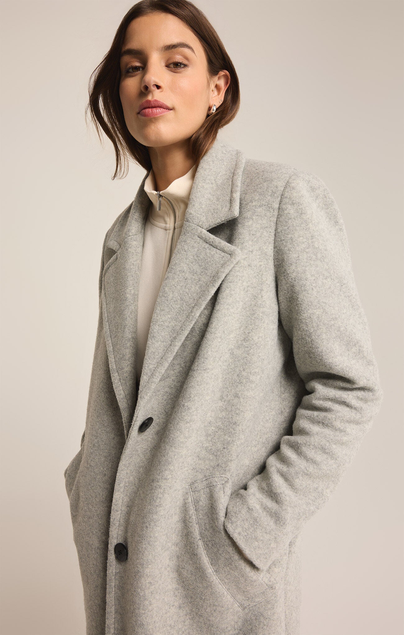 Stay warm and stylish this winter with our Conway Plush Coat in Heather Grey. This coat features a classic collar, long sleeves, and midi length for ultimate coverage. The lined interior and button front offer extra warmth, while the side seam pockets provide convenience. Made from heavyweight material in a regular fit, it's the perfect addition to any wardrobe.