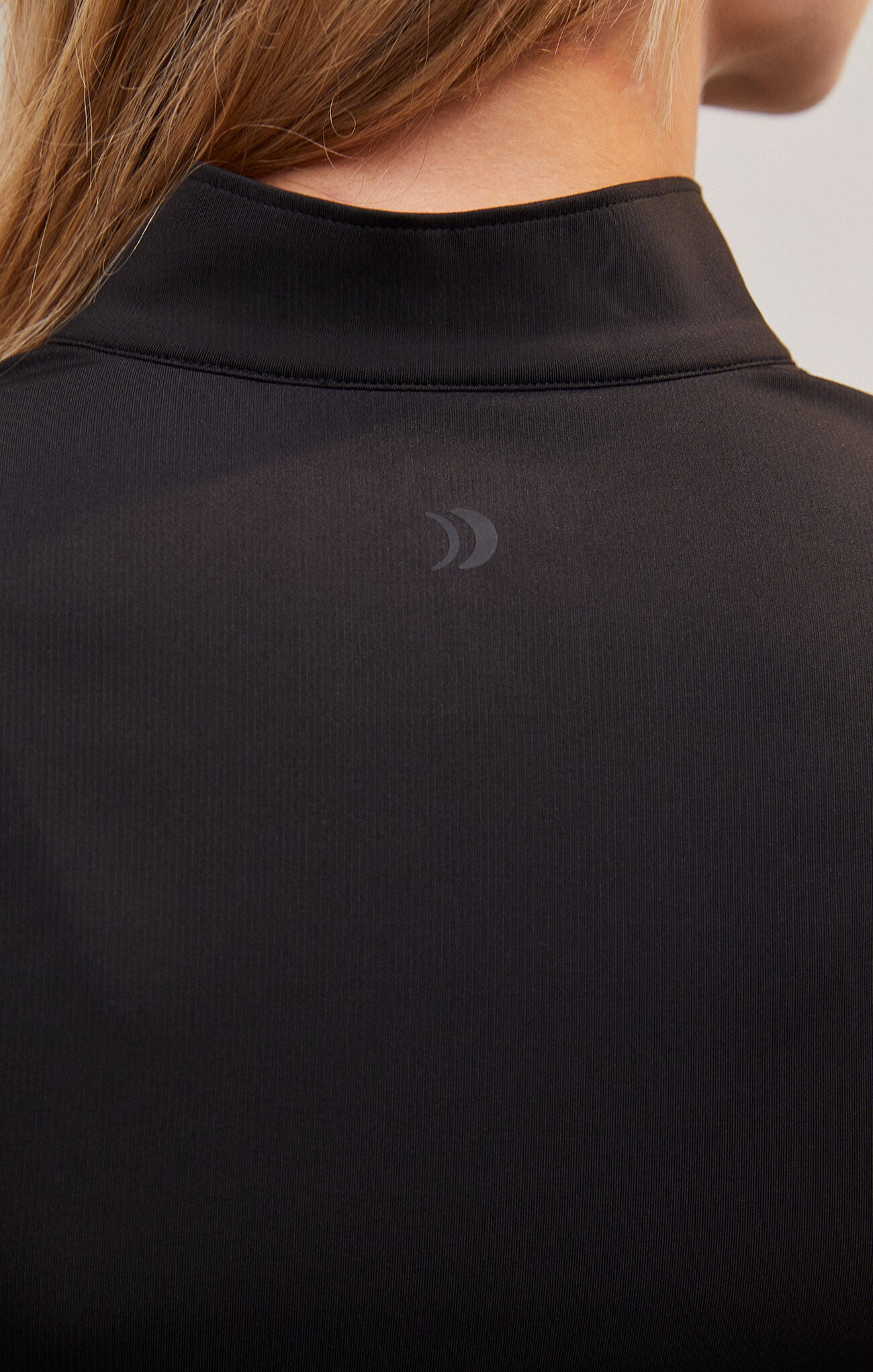 Stay comfortable during your workouts in the Cycle Half Zip, made with rib fabric for a classic fit. It has an invisible zipper, mock neck design and thumbholes for convenience. The waistband hits below your waist and pairs perfectly with the Good Form Rib 7/8 Legging. 78% polyester and 22% spandex.