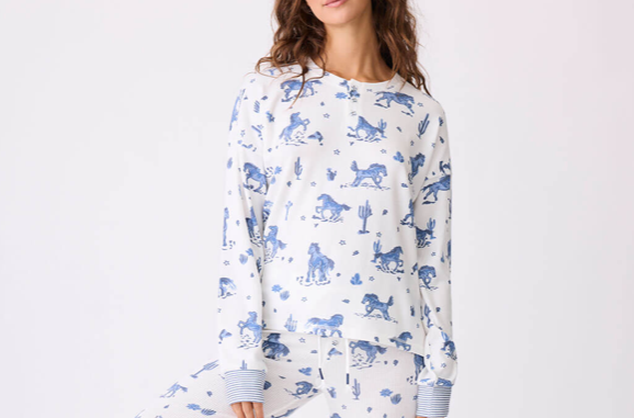 Introducing our Desert Daze Long Sleeve Top- the perfect addition to your wardrobe for cooler days. Embrace the cozy western vibes with a print of horses, stars, and cacti. This comfortable top offers a snug fit and a charming design for everyday wear. Style and comfort come together effortlessly.