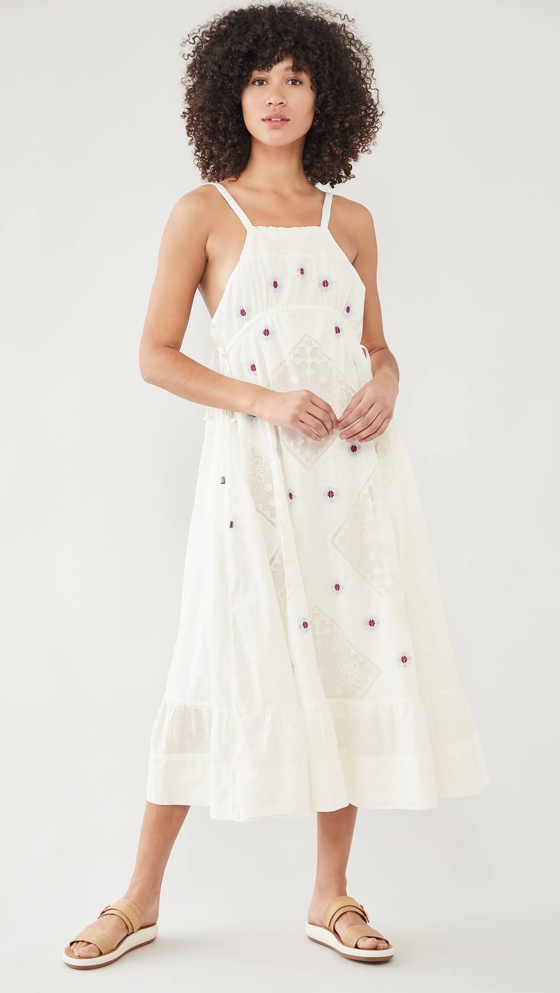 The Dewdrop Maxi Dress features a long length and delicate flower detail for an elegant and stylish look. The fabric is comfortable and breathable, making it ideal for any occasion.