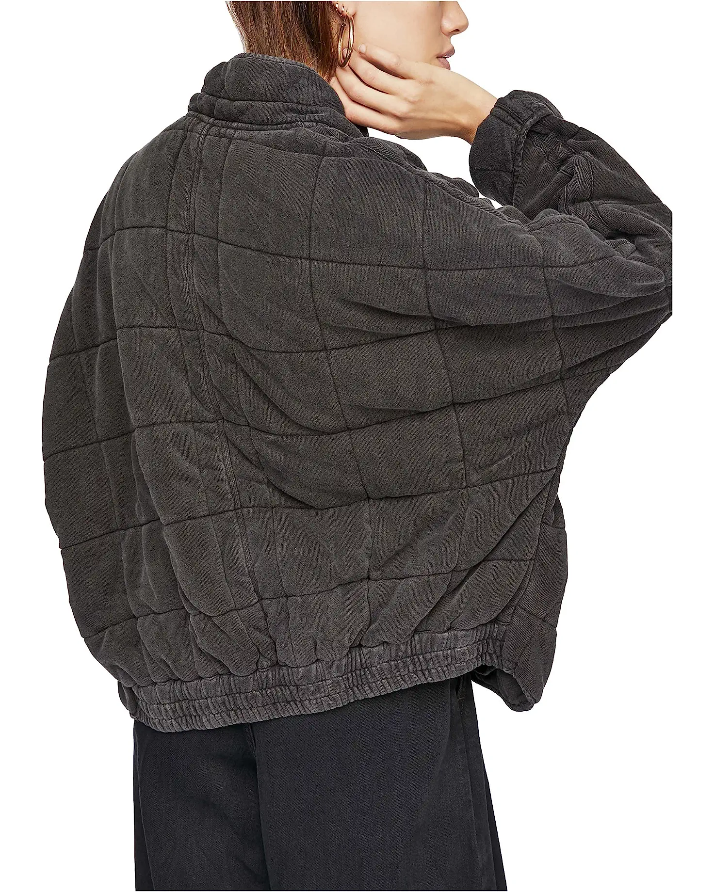 Stay warm in style with this quilted Dolman jacket from Free People. Crafted from a thick fabric, this zip-up jacket offers a comfy fit and plenty of warmth. It's perfect for a chilly day or night, making it a must-have for your closet.