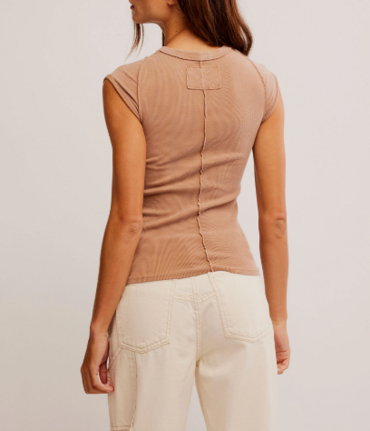 This slim-fit, hip-length tee features a soft, ribbed fabric with a stretchy feel for comfortable wear. Designed with a crew neckline, cap-inspired sleeves, and raised seam details, its minimal style makes it a versatile essential. Perfect for pairing with any outfit, the Ever Had Tee in Macchiato offers simple sophistication you’ll reach for again and again.