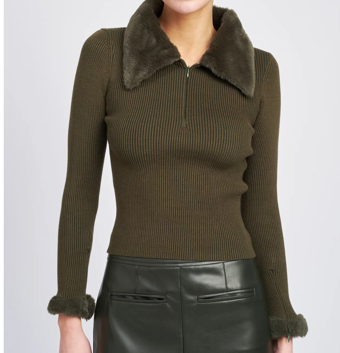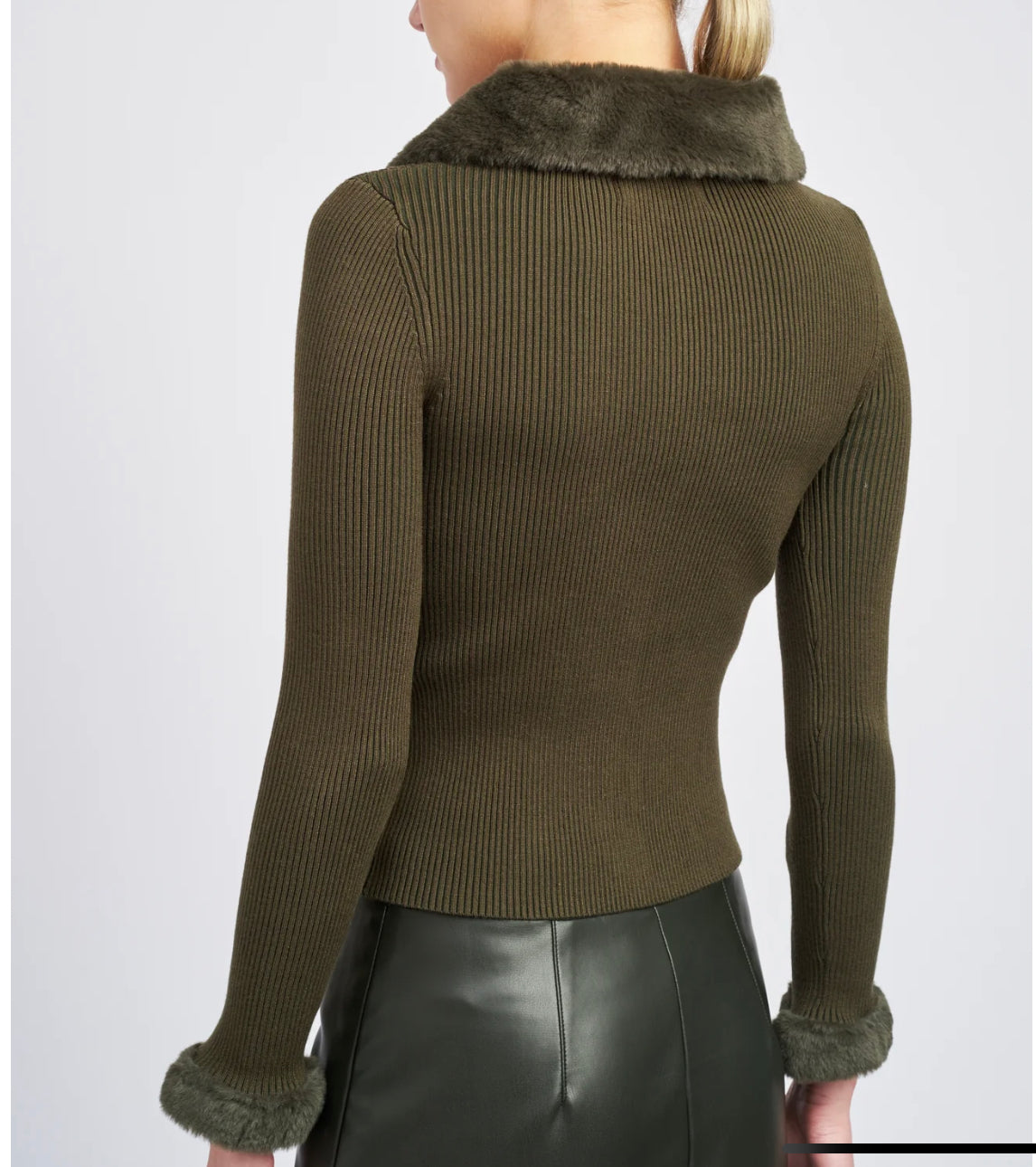 Stay snug and warm with this stylish faux fur knit top. Crafted from a soft and breathable fabric, it will keep you comfortable while keeping you on trend with its chic look.
