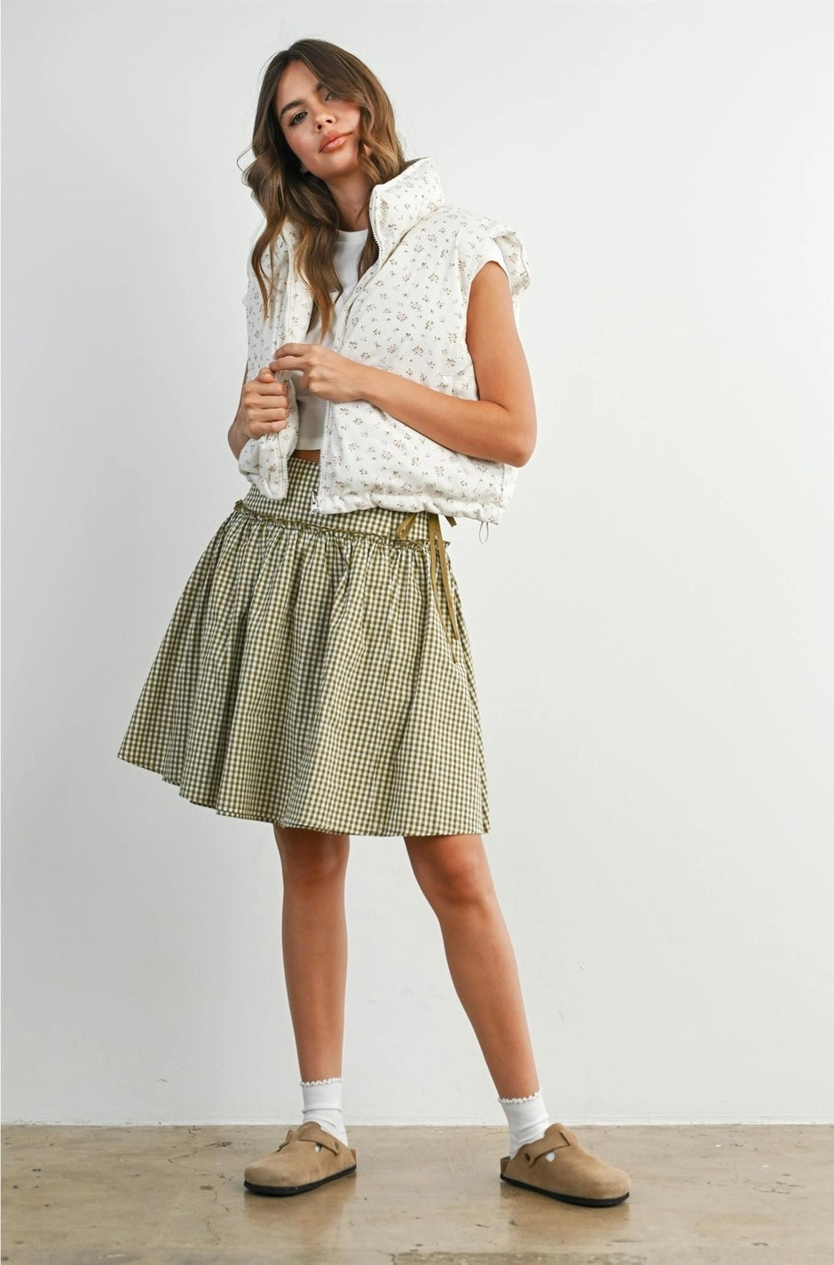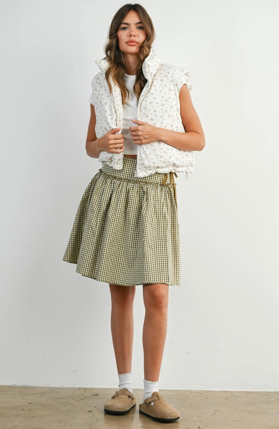 Floral Sleeveless Padded Vest / Ivory-Blush