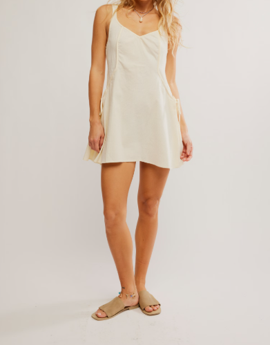 The Forever Fancy Mini dress is a versatile addition to any wardrobe. Its slim fit and A-line skirt provide a flattering silhouette, while the sweetheart neckline, side button closures, and tie paneling add unique details. Whether paired with cowgirl boots or sneakers, this dress offers endless styling possibilities.