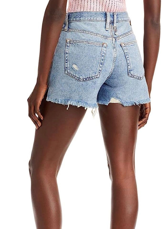 Cool and slouchy, these vintage-inspired denim shorts are featured in a distressed cotton fabrication and a high rise silhouette with exaggerated inseam for longer shape. The classic distressed denim with a little more conservative length. These are a customer favorite!