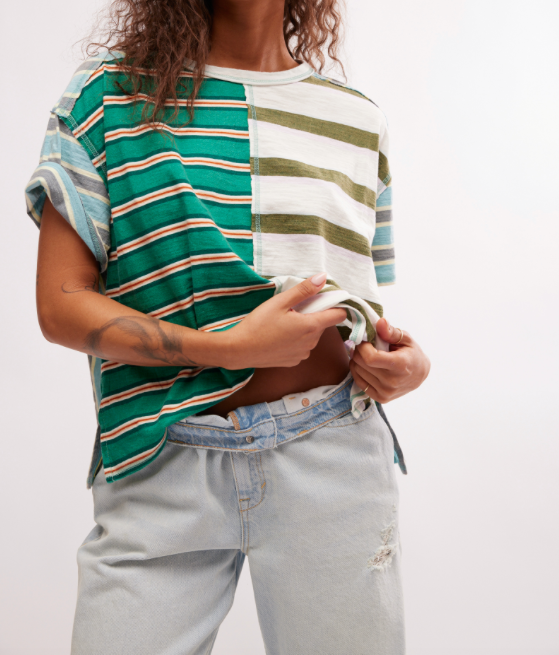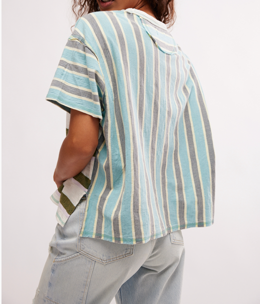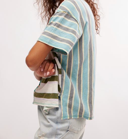 Step out in style with the Get Real Tee. This oversized t-shirt features trendy stripes that will elevate any outfit. Comfortable and fashionable, this is the perfect addition to your wardrobe.