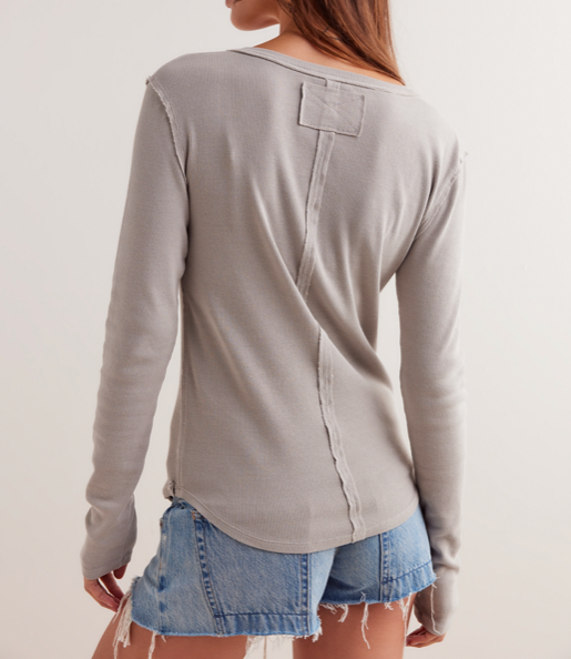 Upgrade your wardrobe with the Jamie Henley in Quiet Grey. This shirt boasts a slim, classic fit for a stylish look, and is made from soft stretch cotton for ultimate comfort. Featuring a button-up henley design, fitted long-sleeves, exposed seam detailing, and a rounded hemline, it's the perfect blend of style and comfort.
