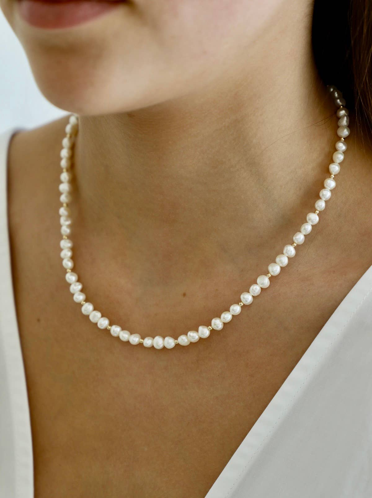 Our Kailani Necklace is a beautiful beachy necklace that is perfect to style everyday for this summer season. Made out of our freshwater nugget pearls and gold filled beaded accents, everyone will be asking you where you got your modern pearl necklace.